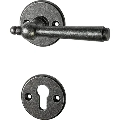 Handle set made from robust and durable galvanised black passivated iron Antique iron door fitting - ideal for setting rustic accents in the living room Rosette: diameter 50 mm, holes: PZ, direction: universal Box contents: 1x door handle on rosette, rosette PZ – galvanised iron, black, passivated, Weight: 1.64685309714 Pounds, Manufacturer: HALCÖ