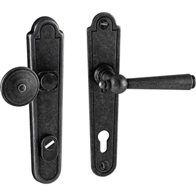 HALCÖ Kaltenbach Interchange Set Door Handle and Knob on Plate PZ 88 Antique Right with Core Pull Protection Galvanised Iron Black Passivated
