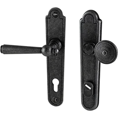 HALCÖ Kaltenbach Interchange Set Door Handle and Knob on Plate PZ 92 Antique Left with Core Pull Protection Galvanised Iron Black Passivated