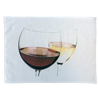 Printed with 2 large glasses of wine Extra soft, absorbent and comfortable Made of 185gsm 100% cotton Hemmed on 4 sides Machine washable and easy to use