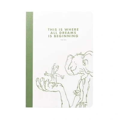 Inspired by Roald Dahl's beloved tale, The BFG. Featuring the iconic quote, 'This is where all dreams is beginning,' this notebook captures the whimsy and wonder of the Big Friendly Giant's extraordinary adventures Crafted from responsibly sourced FSC-certified paper, this notebook combines eco-consciousness with artistic elegance Measures approximately 8.2 x 5.5 inches Whether you're jotting down ideas, sketching, or simply taking notes, the smooth, high-quality paper provides the perfect canvas for your thoughts and creativity to flourish Contained in protective packaging; Ready for easy gifting