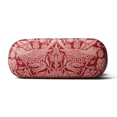 Carry a piece of classic British design wherever you go with this elegant glasses case featuring the iconic Strawberry Thief pattern by William Morris; One of his most beloved designs, Strawberry Thief features charming songbirds nestled among swirling foliage and ripe strawberries, bringing a touch of nature and vintage sophistication to your everyday routine Crafted from durable PU leather, the hard-shell exterior offers reliable protection against scratches, bumps, and drops, while the soft velvet-lined interior keeps your lenses safe and smudge-free; It also comes with a coordinating microfiber cleaning cloth Measures approximately 6.5 x 2.76 x 1.65 inches; Wipe clean with a slightly damp, soft cloth Ideal for both reading glasses and sunglasses, this case is a perfect gift for fans of classic British design, art history lovers, and anyone who appreciates beautiful yet functional accessories Contained in protective packaging; Ready for easy gifting