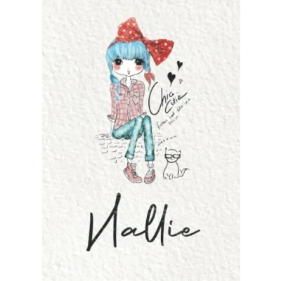 Hallie: Notebook A5 Personalized name Hallie Birthday gift for women, girl, mom, sister, daughter Cover: Fashion girl with cat 120 lined pages journal, small size (ca. 6 x 9 inches)