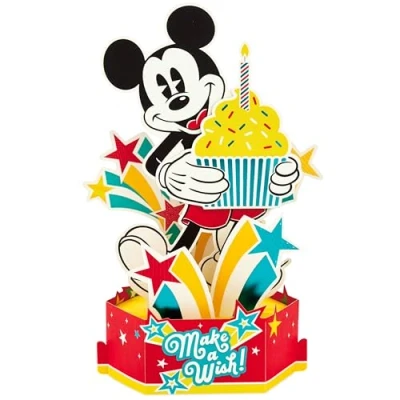 Hallmark 3D & Pop Up Birthday Card, Disney Mickey Mouse with Cupcakes Stars, for Him, Red, Yellow