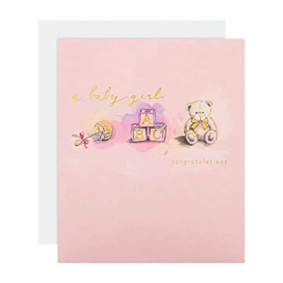 Hallmark Baby Girl Birth Congratulations Card Traditional Design with Gold Foil Lettering and Details