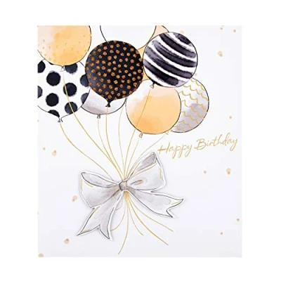 Birthday happiness is definitely in the air with this gorgeous card from Hallmark Printed on high quality board, made of material from well managed, FSC certified forests and other controlled sources Features a 3D-effect bow attachment, gold foil details and gold glitter highlights; the card comes complete with a co-ordinating black, Hallmark branded envelope Message Inside Reads: Enjoy Your Day Measures 18 cm by 16 cm; Within Standard UK 'Letter' Size Limits