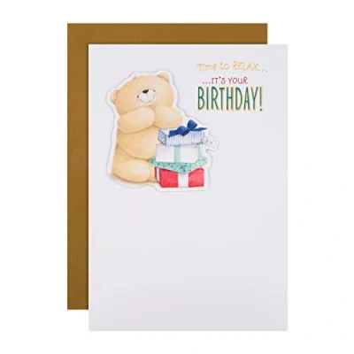 Wish them a fantastic time on their special day, and give them all the birthday feels, with this super-cute, classic Forever Friends card from Hallmark This card is fully recyclable, and made of material from well-managed, FSC-certified forests and other controlled sources Printed on high-quality board with a 3D-effect character attachment, embossed elements and gold foil details; the card comes complete with a co-ordinating gold, Hallmark branded, envelope Message Inside Reads: Wishing you a fantastic day. Have a great one! Card Measures: 22.8 cm by 15.9 cm, Within Standard UK 'Letter' Size Limits