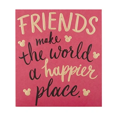 FRIEND BIRTHDAY CARD: Bring the magic of Disney to the wonders of their birthday celebrations with this Hallmark birthday card, and celebrate your friendship too. The perfect card for a Disney and Mickey Mouse lover on their birthday. DISNEY BIRTHDAY CARD: Discover the magic of a Hallmark birthday card with this Disney-inspired card for your favourite friend. This card features embossed elements, gold foil details and lettering, and Mickey Mouse's iconic head silhouette. PREMIUM QUALITY CARD: This product is made using material from well-managed, FSC-certified forests and other controlled sources. PLAYFUL MESSAGE: Write a heartfelt message for your friend to cherish and accompany it with our birthday wish, "(especially you) Happy Birthday", the perfect opportunity to send a Disney-themed birthday wish they'll love. SIZE: This card measures 18cm by 16cm, and will add a pop of colour to their birthday celebrations. This card is accompanied by a co-ordinating pink envelope. Within Standard UK 'Letter' Size limits.