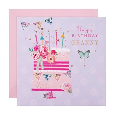 Sweeten your Granny's Birthday and celebrate everything she means to you, with this beautiful cake themed card, from Hallmark This card is fully recyclable, and made of material from well-managed, FSC-certified forests and other controlled sources Features rose gold foil details and a 3D add on; Comes complete with a co-ordinating Light Pink, Hallmark branded envelope Message Inside Reads: With love on this special day for celebrating you Measures: 16 cm by 16 cm; Within Standard UK 'Letter' Size Limits