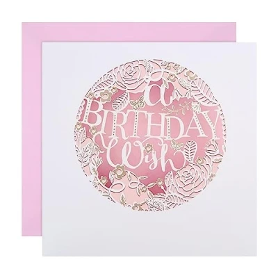 Send beautiful birthday wishes with this stunning birthday card from Hallmark Printed on high-quality board, this card features laser cut details and pewter foil details; Comes complete with a co-ordinating light pink, Hallmark branded envelope This card is fully recyclable, and made of material from well-managed, FSC-certified forests and other controlled sources Message Inside Reads: Have a lovely day Card Measures: 19.8 cm by 19.8 cm, Within Standard UK 'Large Letter' Size Limits