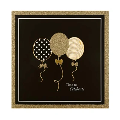 BIRTHDAY CARD: Make sure the birthday celebrations sparkle with this dazzling Birthday card from Hallmark. The perfect way to add a touch of sophistication to their day and make them feel super special. Enjoy their day with this Birthday card. BLACK & GOLD BIRTHDAY CARD: Printed on high-quality board, this card features gold glitter design elements and gold foil details. With a golden border, a balloon design and dark style, this card is perfect for adding a touch of elegance to their Birthday. HIGH QUALITY CONSTRUCTION: This product is made using material from well-managed, FSC-certified forests and other controlled sources. BIRTHDAY MESSAGE: Express your own Birthday wish to accompany our loving message, 'Happy Birthday'. This card includes enough space to send a heartfelt note, funny memory or Birthday antidote. Perfect for a milestone Birthday and more! CONVENIENT SIZE: This card measures H16cm by W16cm, and is the perfect size to wish lots of love. This card is accompanied with a co-ordinating Hallmark branded, polka-dot patterned envelope. Within Standard UK 'Letter' Size Limits.
