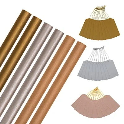 CHRISTMAS WRAPPING PAPER: Give every present that wholesome look this Christmas time, with this fantastic pack of 6 plain Kraft wrapping paper, in 3 colours and 30 matching gift tags, and make every gift special with our wrapping paper. CHRISTMAS WRAPPING PAPER ROLLS: This pack of 6 wrapping paper offers convenience and variety. This pack contains 3 colours, a brown Kraft, a silver Kraft and a gold Kraft, and is accompanied with 3 packs of 10 gift tags in the same colours. HIGH-QUALITY CONSTRUCTION: This product is fully recyclable, and made of material from well-managed, FSC-certified forests and other controlled sources. VERSATILE USE: This Christmas wrapping paper is versatile and can be used to wrap a wide range of presents. From small trinkets like jewellery or stocking fillers to larger items like books, clothing, and even toys. ROLL WRAP SIZE: Each roll measures 70cm by 300cm (3 metres) each, providing enough coverage for your presents, with a handy cutting grid on the reverse for an easy, guided cut, and tags measure 9cm by 4.5cm, perfectly sized for a message.