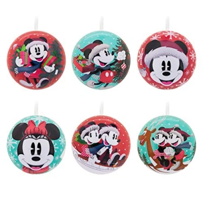 Hallmark Disney Mickey Mouse and Minnie Tin Ball Christmas Ornaments, Set of 12
