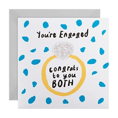 Give them your congratulations with this contemporary and wonderfully designed Engagement card from Hallmark! This card is fully recyclable, and made of material from well-managed, FSC-certified forests and other controlled sources Printed on high-quality board with a sparkling diamond styled 3D attachment and gold foil to highlighting the engagement ring.; this card comes complete with a co-ordinating Hallmark Branded Envelope Message Inside Reads: You're Perfect For Each Other Measures: 16 cm by 16 cm; Within Standard UK Letter Size Limits