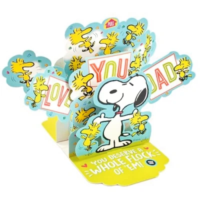 Hallmark Fathers Day Card, 3D & Pop Up Snoopy Design, Musical, Blue, Yellow