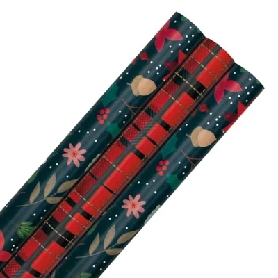 Hallmark Floral & Tartan Christmas Wrapping Paper Multipack 3 x 3M Rolls (9m)