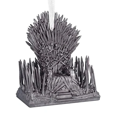 Show your “House of the Dragon” style with this Iron Throne Hallmark Christmas tree ornament. The iconic seat, forged from 1,000 swords, makes a great gift for your favorite Targaryen fan. Great Christmas gift idea for fans of the HBO series "House of the Dragon" and "Game of Thrones." Resin ornament with hanger attachment. Includes: One Hallmark Christmas ornament. Approx. Size in Inches: 3 x 3.5 x 2