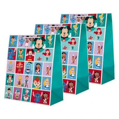 BIRTHDAY GIFT BAG: Have so much fun and bring that Disney magic to any celebration, with this fun Disney Large Gifts Bags Pack. The perfect way to celebrate a kids birthday, deliver lots of Disney goodies at Christmas, and so much more. DISNEY GIFT BAG: This pack of 3 Large Gift Bags features 1 Disney themed design, with characters from Peter Pan, Lilo and Stitch, Bambi, Mickey and Minnie Mouse, The Little Mermaid, Alice In Wonderland, Aladdin, The Lion King and more. HIGH-QUALITY CONSTRUCTION: This product is made using material from well-managed, FSC-certified forests and other controlled sources. CIRCULAR GIFT TAG: Each gift bag comes complete with a co-ordinating die cut circular gift tag with Mickey Mouse. The tags provide enough space for you to write your own personal message and wish, adding that special touch to your gift. GIFT BAG SIZE: Each large bag measures H33cm by W26.5cm by D14.6cm and are the perfect size to deliver their gifts and surprises. From a kids birthday surprise, their favourite soft toy and collectibles, a photo frame and more to celebrate any occasion.
