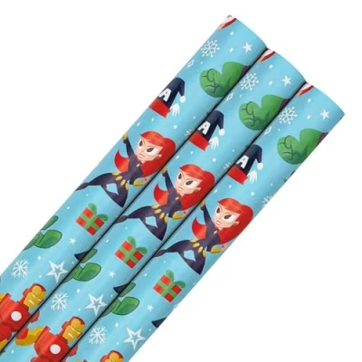 WRAPPING HERO: Deliver festive style like a superhero and make sure your gifts are the stars of the show with this fun MARVEL Avengers themed Christmas wrapping paper multipack from Hallmark. AMAZING STYLE: The pack contains 3 rolls of wrapping paper in 1 MARVEL design, featuring Spider-Man, Captain America, The Hulk, Thor, Iron Man and Black Widow against a pale blue background. SUSTAINABLE DESIGN: This product is made using material from well-managed, FSC-certified forests and other controlled sources. THOUGHTFULLY MADE: Plastic free and fully recyclable, with additional paper included in place of plastic wrap to protect the roll and keep your wrapping paper perfect. ROLL SIZE: Each Roll Measures: 70 cm by 400 cm (4m). Enough to take on even the most epic present haul!