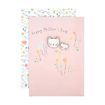 MOTHERS DAY CARD: Wish her the most purrfect Mothers Day with all the love and admiration she deserves, with this cute Mothers Day card and set of two cat themed badges from Hallmark. The perfect 'Mummy & Me' keepsake to keep each other close. MOTHERS DAY KEEPSAKE: Printed on high-quality board, this card features a simple floral design with the message 'Happy Mothers Day' on the front and 2 wooden badge attachment keepsakes in adorable cat designs for you and your mum to keep. HIGH QUALITY CONSTRUCTION: This product is made using material from well-managed, FSC-certified forests and other controlled sources. LOVING MESSAGE: Express your own Mother's Day wish to accompany our loving message, 'Thank you for always being so lovely'. The perfect way to make her day extra special and full of sweetness. Make this Mother's Day the best yet! SIZE: This Mothers day card measures 22.8cm by 15.9cm, and is the perfect size to wish lots of love. This card is accompanied with a co-ordinating Hallmark branded, flower patterned envelope. Within Standard UK 'Large Letter' Size Limits.
