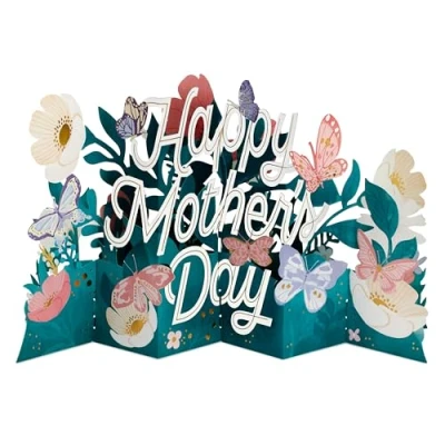 MOTHERS DAY CARD: Wish her the most amazing time and show how your love blooms with this gorgeous 3D and pop up Mother's Day card from our Paper Wonder collection. The perfect way to show your Mum or other female relative just how much you appreciate it MOTHERS DAY CARD: Printed on high-quality board, this card pops-up into a 3D diorama of a jumbo banner with flowers design. This card features die-cut details, metallic gold foil details, with the message 'Happy Mother's Day' on the front HIGH QUALITY CONSTRUCTION & FULLY RECYCLABLE: This card is fully recyclable, and made of material from well-managed, FSC-certified forests and other controlled sources MOTHER DAY MESSAGE: Write a special Mothers Day greeting to wish them a wonderful day and accompany it with our message, 'Wishing you the wonderful day you deserve!'. The perfect way to make sure their day is extra special and full of love SIZE: The constructed card measures H30.5cm by W29cm by D18.5cm, and flat card measures H30.5cm by W21.9cm. This pop up Mothers Day card is accompanied by a Hallmark branded, Pink envelope. Within UK 'Large Letter' Postage Size Limits