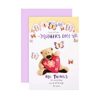 Hallmark Mothers Day Card, Cute Wellibobs design, Bear, Heart & Butterfly Card for Mum, Grandma, Wife, White