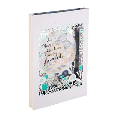 MUM MOTHERS DAY CARD: Remind your wonderful Mum just how much you cherish the time you share together with this beautiful 3D and pop up Mothers Day card from Hallmark. The perfect way to remind your Mum just how much her Daughter loves her. MOTHERS DAY CARD FOR MUM: Printed on high-quality board, this card pops up into a 3D frame design and features laser cut details, silver foil details, turquoise foil details and the message 'Our Mum & Daughter times are my favourite' on the front. HIGH QUALITY CONSTRUCTION & FULLY RECYCLABLE: This card is fully recyclable, and made of material from well-managed, FSC-certified forests and other controlled sources. LOVING MESSAGE: Express your own Mother's Day wish to accompany our loving message, '...always have been, always will be. Happy Mother's Day'. The perfect way to make their day extra special. Make this Mother's Day the best yet! SIZE: This Mothers day card measures 22.8cm by 15.9cm, and is the perfect size to wish lots of love. This card is accompanied with a co-ordinating Hallmark branded, printed envelope. Within Standard UK 'Letter' Size Limits.