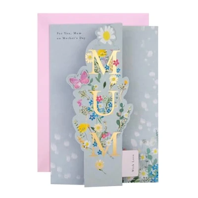 MUM MOTHERS DAY CARD: Deliver a gift your mum will love for a lifetime, with this wonderful Mother's day card with a sweet keepsake plant pot decoration, the perfect way for her to cherish all your love. The perfect Mothers Day appreciation MOTHERS DAY KEEPSAKE: Printed on high-quality board, this card features metallic gold foil details, a detachable, keepsake, the message 'Amazing Mum, Love helps us grow & makes us bloom' on the front and a laser cut wooden plant pot decoration HIGH QUALITY CONSTRUCTION: Printed on high quality board, made of material from well-managed, FSC-certified forests and other controlled sources LOVING MESSAGE: Express your own heartfelt wish to accompany our loving message, 'So grateful for all the wonderful things you do to make life beautiful. Happy Mother's Day''. The perfect way to make their Mothers day extra special SIZE: This Mothers day card measures 22.8cm by 15.9cm, and is the perfect size to wish lots of love. This card is accompanied with a co-ordinating Hallmark branded, brown Kraft envelope. Within Standard UK 'Letter' Size Limits