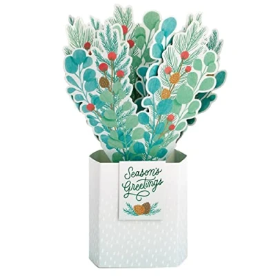 Hallmark Paper Wonder Christmas Card Pop Up Plant Bouquet Design