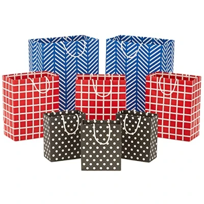Hallmark Recyclable Gift Bag Assortment (8 Bags: 3 Small 6", Medium 9", 2 Large 13") Red, Blue, Black and White for Birthdays, Graduations, Holidays