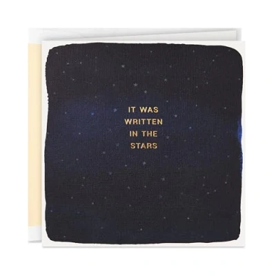 Celebrate another year together with a sweet anniversary card. Cover feature a beautiful night sky design and gold foil lettering that reads: "It was written in the stars." Inside reads: "Some people are just meant to be together. Happy anniversary." Anniversary card measures 5.4" x 5.4" and comes with a coordinating envelope. Printed on high quality paper stock, Hallmark's greeting cards are made with paper from well-managed forests. Hallmark Signature offers stylish shoppers a curated and considered line of upscale and unique cards and gifts that reflect their personal style and make an immediate and lasting impression.