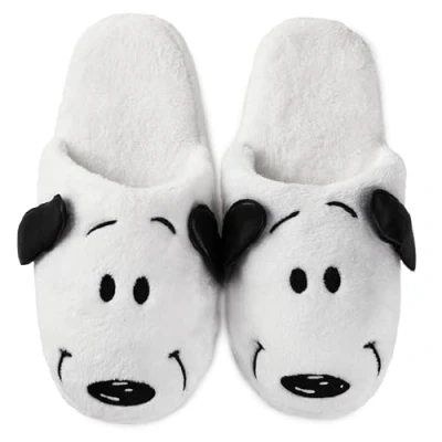 SNOOPY SLIPPERS: Keep your toes toasty while giggling with a big smile on your face with SNOOPY! These cute mule slippers feature an embroidered design of SNOOPY’s face with attached ears that stick out of the sides to make your smile SOUND FEATURE: For added fun, press the button on the side of one slipper to hear Charlie Brown’s beloved beagle laugh or howl, with 1 of 4 phrases to hear. These slippers bring SNOOPY’s playful spirit to life with every step COMFORTABLE DESIGN: The slippers include a plush fleece lining and non-slip soles, ensuring comfort and safety. The upper and insole filling are made from 100% polyurethane foam, while the midsole and outsole filling are 100% polyethylene foam EASY CARE INSTRUCTIONS: To clean, simply wipe with a damp cloth. These slippers are designed for easy maintenance, keeping them looking great wear after wear. The perfect addition to your loungewear or slipper collection BATTERY WARNING: KEEP OUT OF REACH OF CHILDREN. If you think batteries might have been swallowed or placed into any part of the body, seek immediate medical attention. This is not a toy. Non-replaceable button cell batteries enclosed. Do not dispose of batteries in waste bin. Only discard electrical/electronics in a separate collection scheme which caters for the recovery and recycling of the materials contained within. Do not throw product into fire