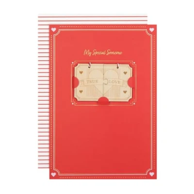 VALENTINES CARD: Gift them a token of your love and make their day extra special, with this gorgeous Valentine's Day card and Wooden Token keepsake. The perfect way to make their day full of love, laughter and new memories. SOMEONE SPECIAL VALENTINES CARD: This Valentines Card features metallic gold foil details, red and white paper twine, and the message 'My Someone Special True Love' on the front. This card includes a laser cut wooden love token keepsake. HIGH QUALITY CONSTRUCTION & FULLY RECYCLABLE: Printed on high quality board, made of material from well-managed, FSC-certified forests and other controlled sources. HEARTWARMING MESSAGE: This card is perfect for expressing your deepest feelings to your Someone Special and is accompanied with the message 'So lucky to have you in my life!'. Perfect for an extra special celebration filled with love and laughter. PERFECT SIZE: This Valentines Card measures H22.8cm by W15.9cm and is accompanied with a Hallmark branded, patterned envelope. Fitting within UK ‘Letter’ postage size limits, It's ideal for sending through the mail without any hassle.
