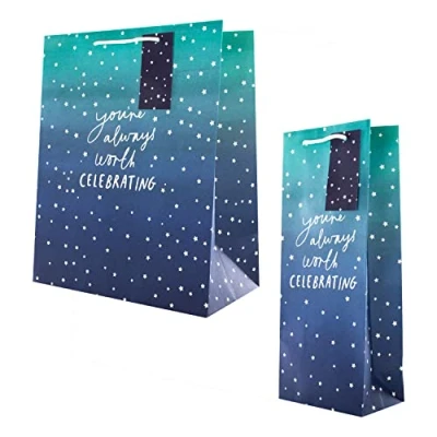 The multi-pack includes: One Large Gift bag and One Bottle Gift bag This product is fully recyclable, and made of material from well-managed, FSC-certified forests and other controlled sources White Paper Handles and a blank Gift Tag The Large Gift Bag can fit a variety of gifts including Books, Clothes, Chocolates and More Large bag dimensions - H 33 cm by W 26.5 cm by D 14.5 cm, Bottle bag dimensions - H 32.7 cm by W 13.3 cm by D 8.3 cm