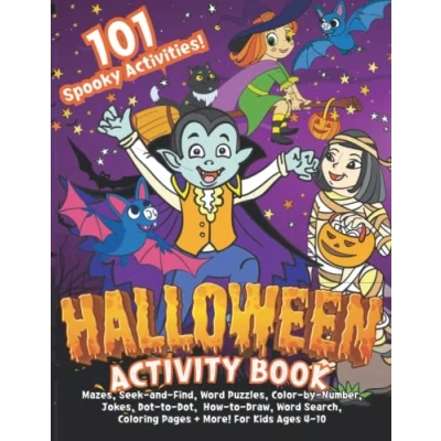 Halloween Activity Book: 101 Spooky Activities: Mazes, Seek and Find, Word Puzzles, Color by Number, Jokes, Dot to Dot, How Draw, Search, Coloring Pages + More! for Kids Age 4 10