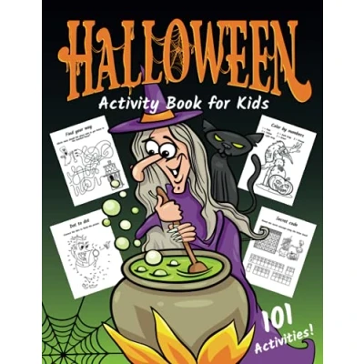 Halloween Activity Book for Kids: Workbook with 101 Fun Activities Including Logic Puzzles, Coloring Pages, Dot to Dot, Mazes, Word Searches and More! Kids Ages 6 12