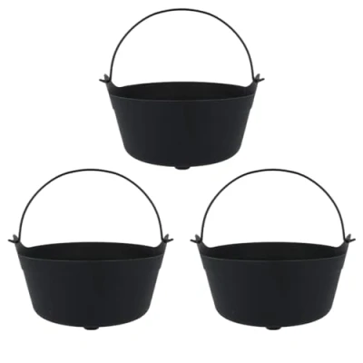 Halloween Black Plastic Cauldrons 24cm Pack of 1,2,3,5 or 10 Witch Cauldron Party Decoration, Trick Treat Candy Bowl, Spooky Centrepiece for Supplies (3, Black)