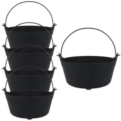Halloween Black Plastic Cauldrons 24cm Pack of 5 Witch Cauldron Party Decoration, Trick or Treat Candy Bowl, Spooky Centrepiece for Supplies