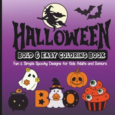 Halloween Bold & Easy Coloring Book: Fun Simple Spooky Designs for Kids, Adults, and Seniors