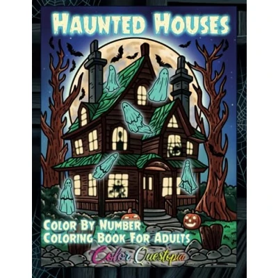 Halloween Color By Number For Adults Haunted Houses: Numbered Designs Scary Fun Times