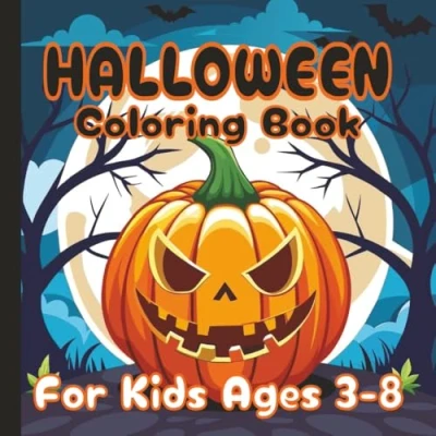 Halloween Coloring Book: Book for Kids Ages 3 8 Cute and Fun Spooky Scenes with Pumpkins, Ghosts, Witches, Bats, Haunted Houses, More!