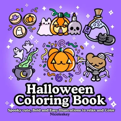 Halloween Coloring Book: Spooky cute, Bold and Easy Illustrations for Adults Kids