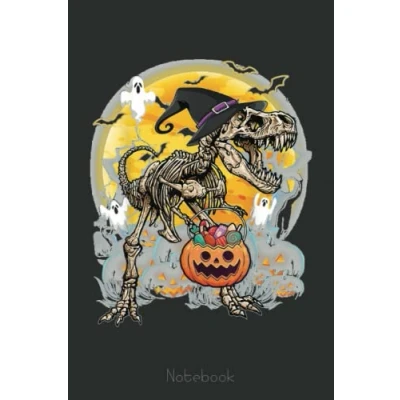 Halloween Dinosaur Skeleton Pumpkin Boys Kids Notebook: Cute Trendy Wide Ruled Paper Notebook Journal Pretty Blank Lined Workbook for ... Home School College Writing Notes