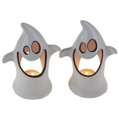 Halloween Ghost Tealight Holders, Ceramic (Set Of 2)