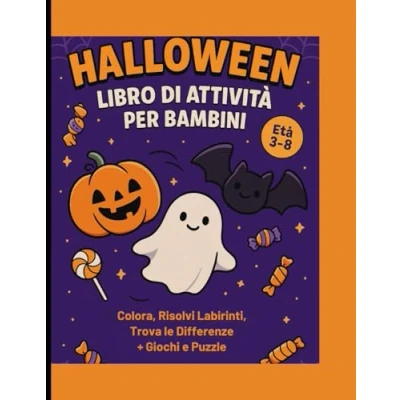 Halloween Libro di Attività da colorare per Bambini 3 8 anni: Disegni Colorare, Labirinti, Trova le Differenze, Puzzle Parole. 90 pagine ... streghe e tanto altro