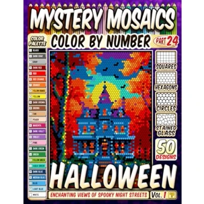 Halloween Night Mystery Mosaic Color by Number: 50 Enchanting Views of Spooky Streets in Squares, Hexagons, Stained Glass, and Circles