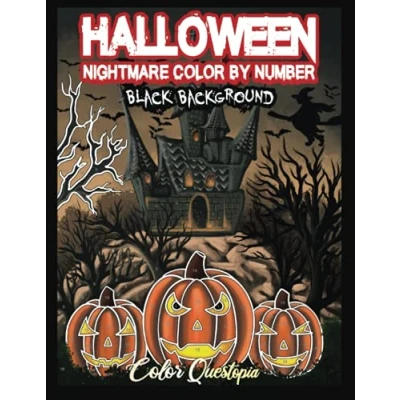 Halloween Nightmare Color By Number BLACK BACKGROUND: Scary and Spine Chilling Coloring Book for Adults (Adult Number)