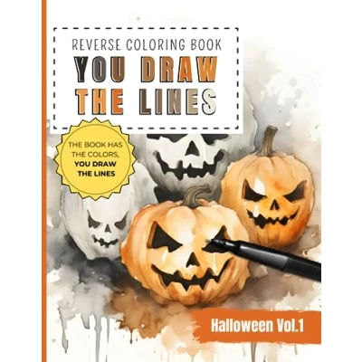 Halloween Reverse Coloring Book You Draw the Line: Pumpkins, witches, bats and horror figures Color Pages To Add Your Own Drawings, Doodles, Line Art ... scenes (Reverse Books)