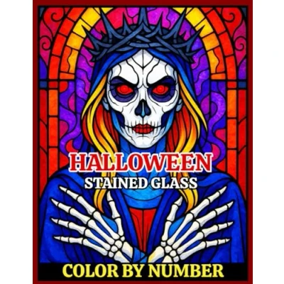 Halloween Stained Glass Color by Number for Adults and Kids: Spooky Coloring Book Featuring Witches, Pumpkins, Ghosts, Haunted Scenes