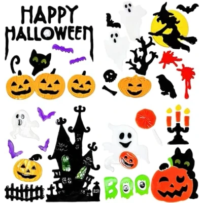 Halloween Window Stickers Gel Clings (4 Sheets of Stickers)